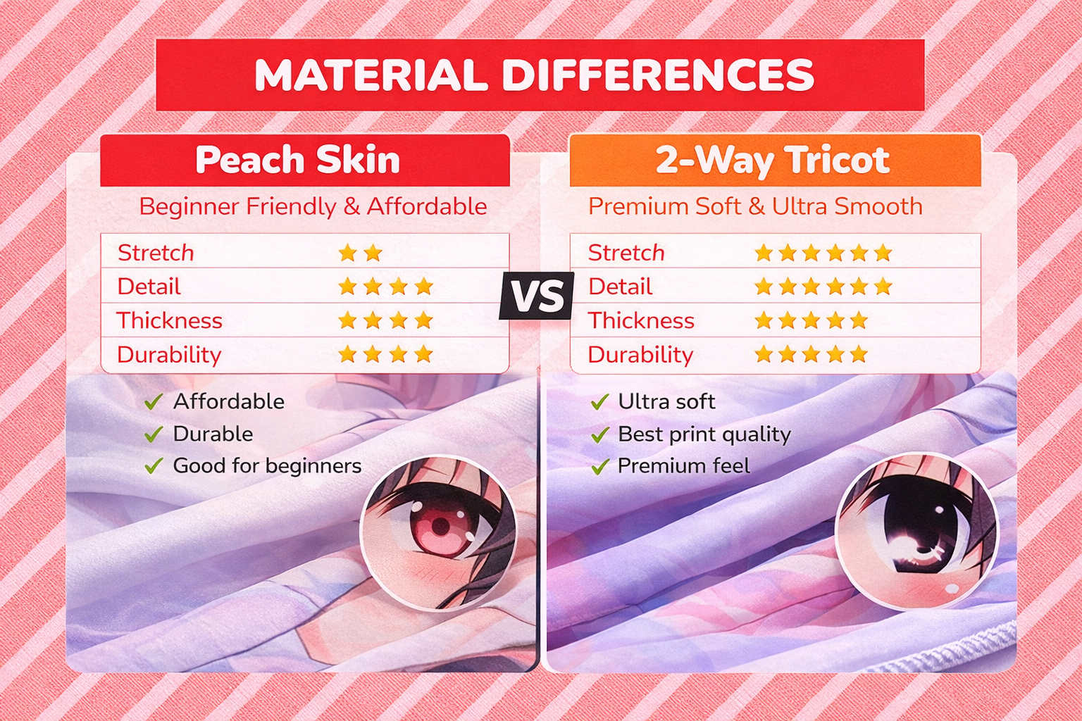 2-Way Tricot vs Peach Skin: Which Dakimakura Fabric Is Better?