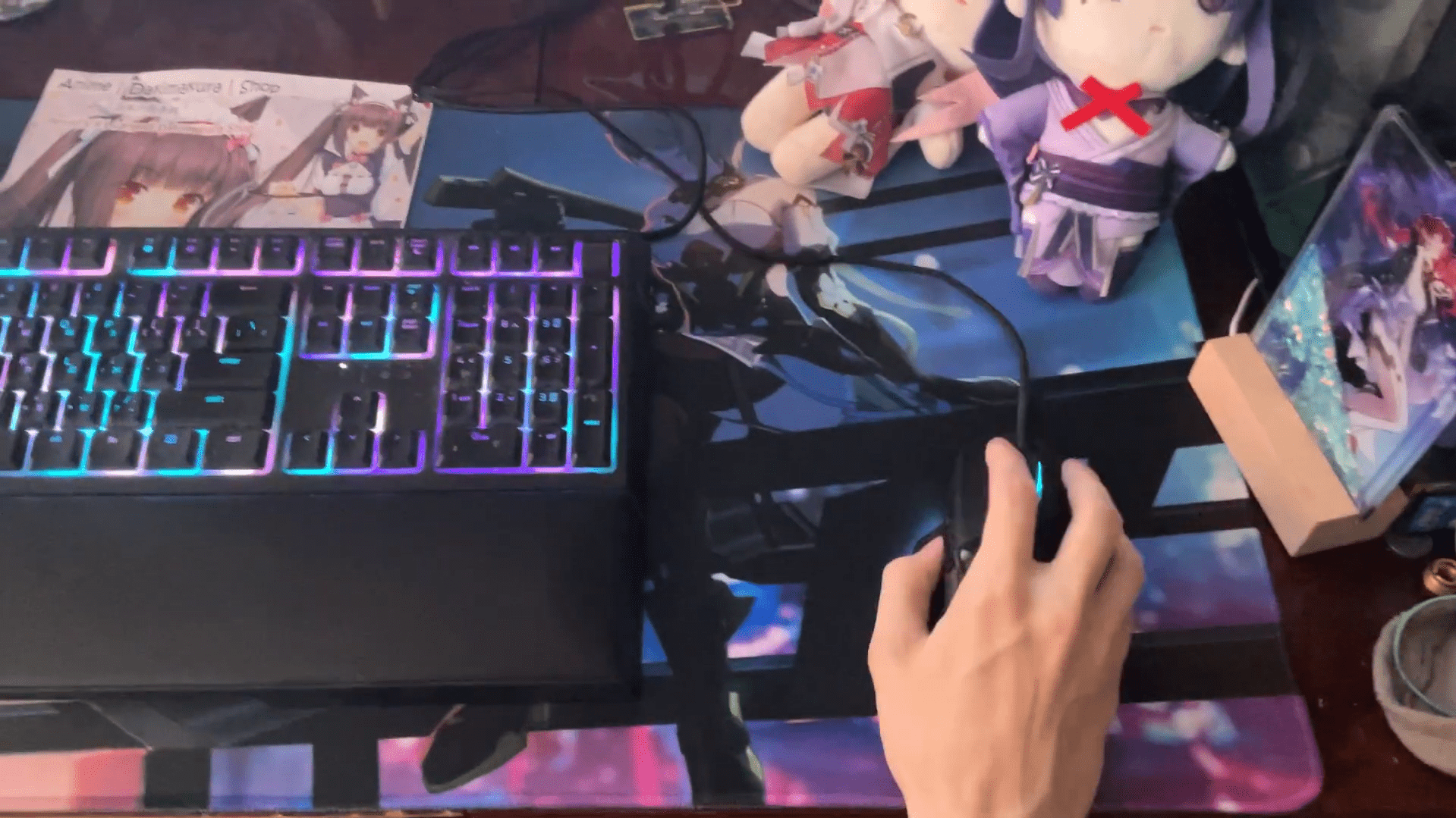 But the real showstopper was the full sized desk mat. He was blown away by its size calling it more of a royal tapestry than a typical mat. He described how smooth the surface felt under his mouse and how well the keyboard stayed in place during use. The thick fabric added extra stability which really impressed him.